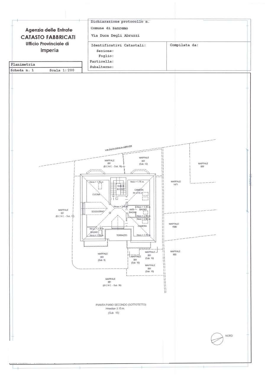 Sanremo via Duca degli Abruzzi in villa nuova indipendente sui quattro lati, attico mansardato con splendida vista mare di nuova ricostruzione comletamente arredato a nuovo, composto da: ingresso living nel soggiorno, tinello-cucina, doppi servizi, camera da letto matrimoniale, camera singola con due letti singoli, termo autonomo, predisposizione per impianto di climamatizzazione, terrazzo sud vivibile, posto auto doppio scoperto, basse spese condominiali, possibilità di acquisto di un ulteriore posto auto singolo.