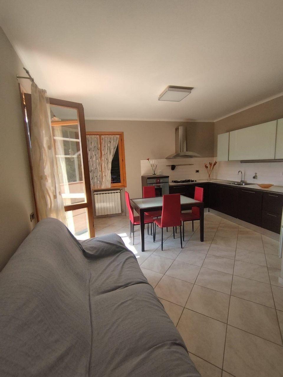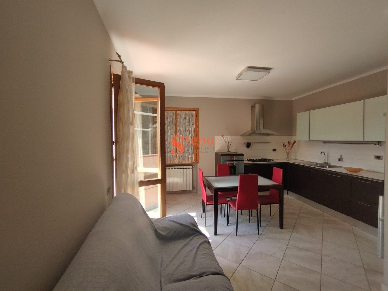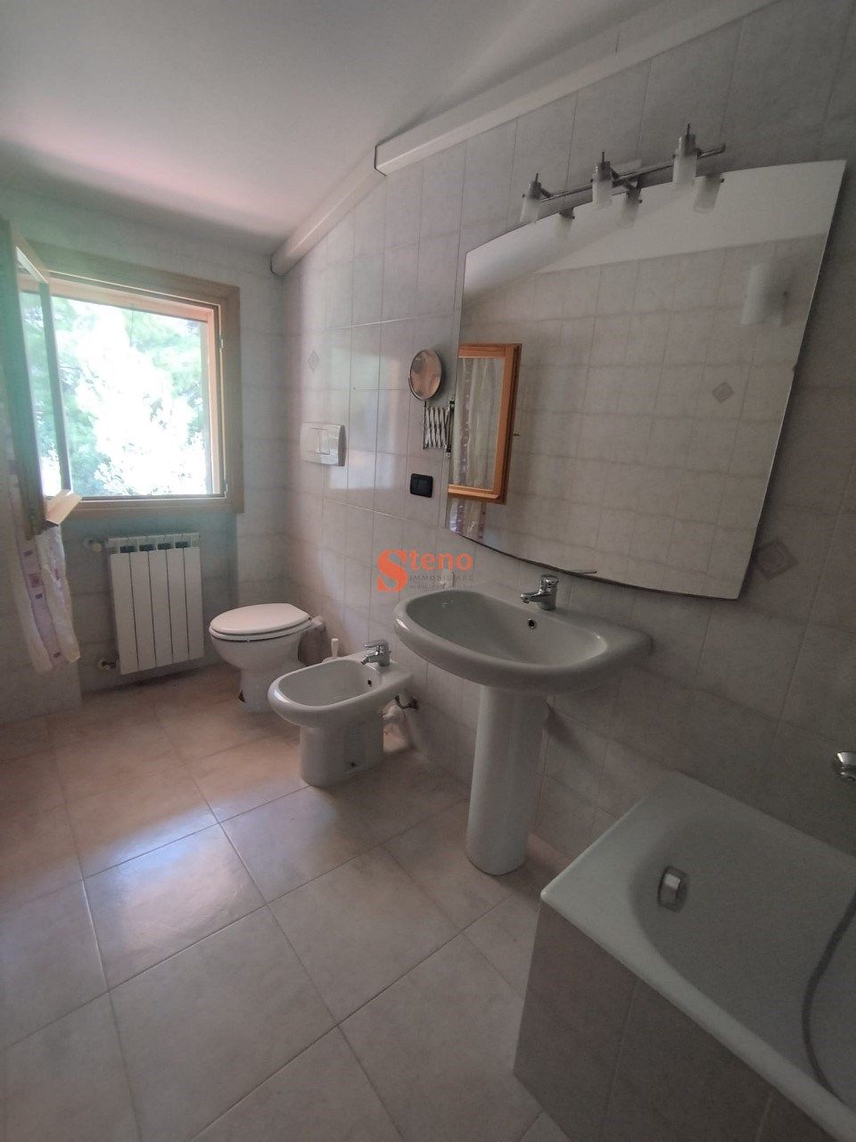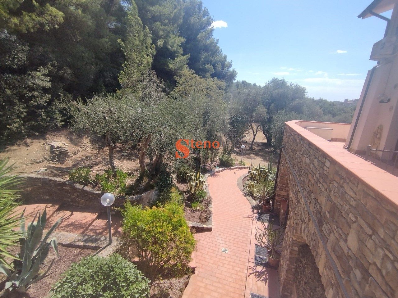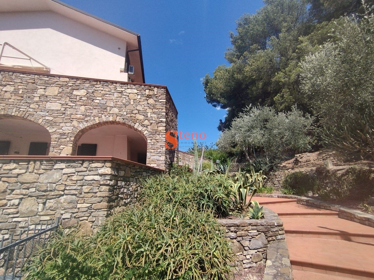 Andora ? in prima collina residenziale, a 2.5 km dal mare e dal centro, proponiamo in vendita alloggio di testa di tre vani + doppi servizi in villa, su due piani, con autorimessa e posto auto, terrazzo privato e giardino condominiale. Nello specifico, trattasi di appartamento su due livelli di mq 60 ca. composto da: ingresso su disimpegno, bagno, soggiorno con angolo cottura arredato ed ampia terrazza abitabile ad angolo di ca. 25 mq ? al piano inferiore ? collegamento con scala interna, camera matrimoniale climatizzata, cameretta/studio e secondo bagno con vasca ? al piano primo ed ultimo. Al piano interrato, completano la proprietà un'autorimessa di 18 mq ca. ed un antistante posto auto per gli ospiti. Zona con vista panoramica nel verde fino al mare. L'appartamento fa parte di un vecchio fabbricato in pietra totalmente ristrutturato intorno al 2005. Riscaldamento Gpl autonomo. Esposto a sud-ovest con tre lati liberi.