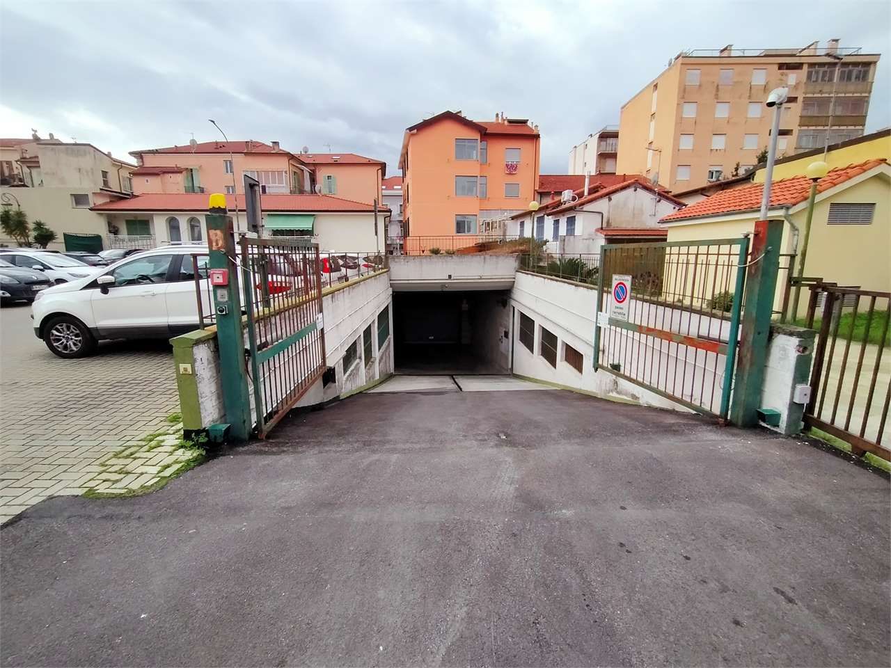 Vallecrosia, centrale, in autorimessa coperta con accesso da rampa carrabile con cancello automatico, ampio box auto singolo per auto e due moto con serranda elettrica sfruttabile anche in altezza, interruttore magnetotermico, presa elettrica di forza, lavandino di servizio e scarico fognario.