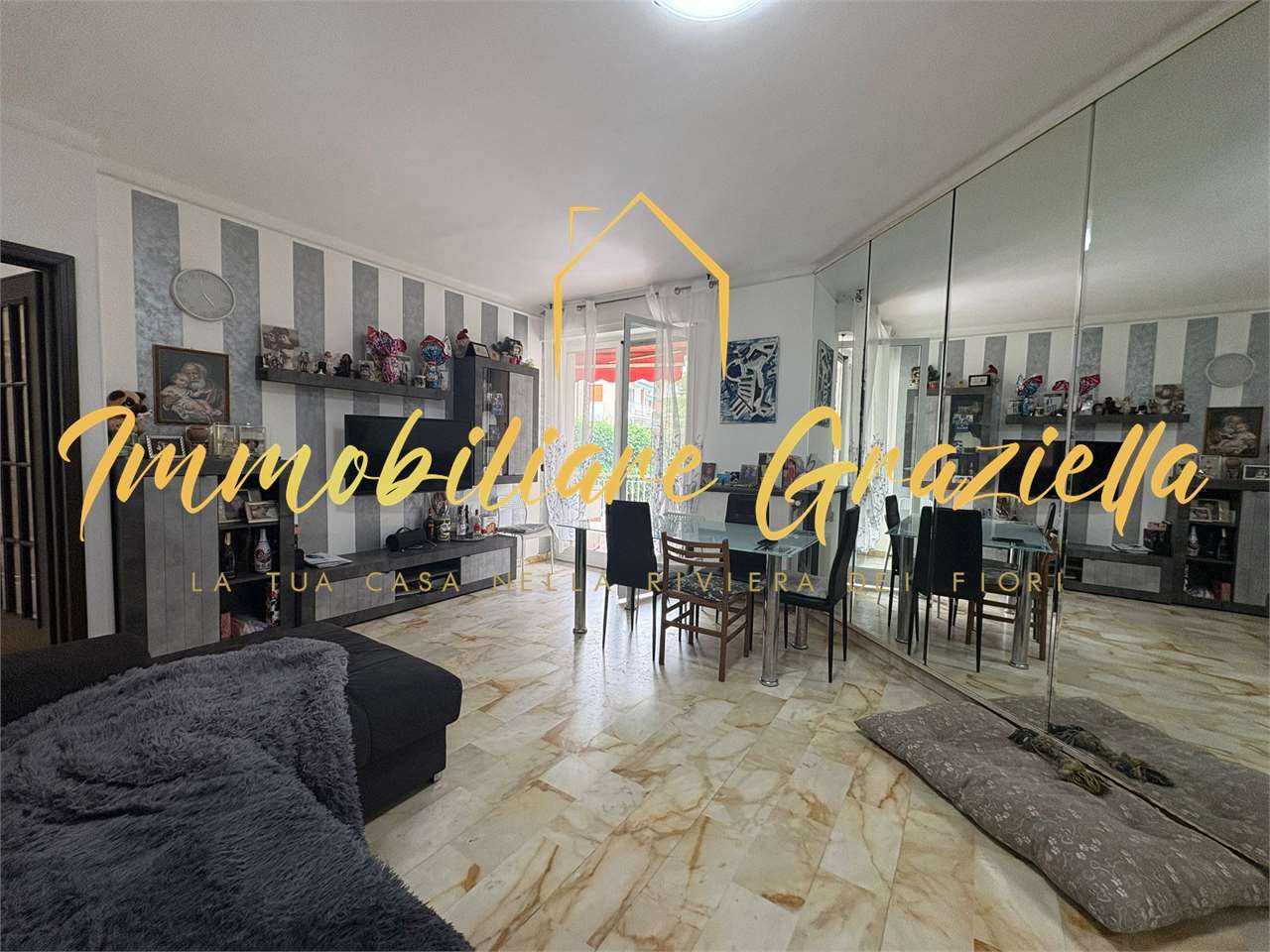 L'appartamento si apre su un comodo ingresso che conduce ad un grande salone, ideale per momenti di relax e convivialità, con accesso diretto al terrazzo. La zona giorno è completata da una cucina. La zona notte comprende tre spaziose camere da letto, un bagno principale con doccia, un bagno di servizio ed un pratico ripostiglio.