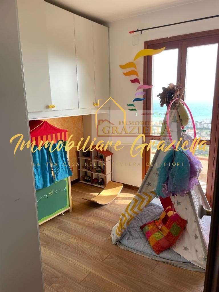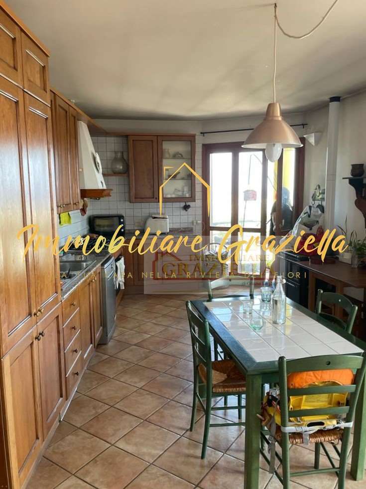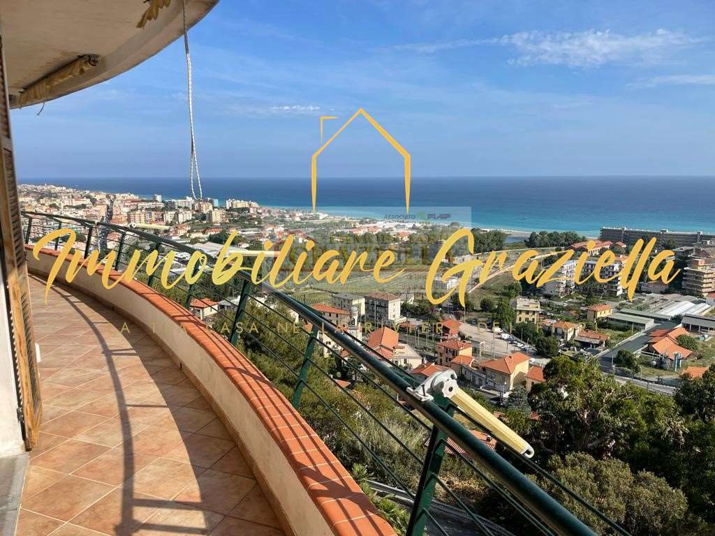 Appartamento in casa indipendente, di circa 120 m2, composto da: 3 camere da letto, 2 bagni, soggiorno con camino, ampia cucina e terrazzo perimetrale con stupenda vista mare.