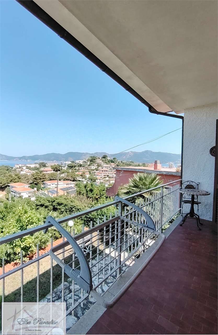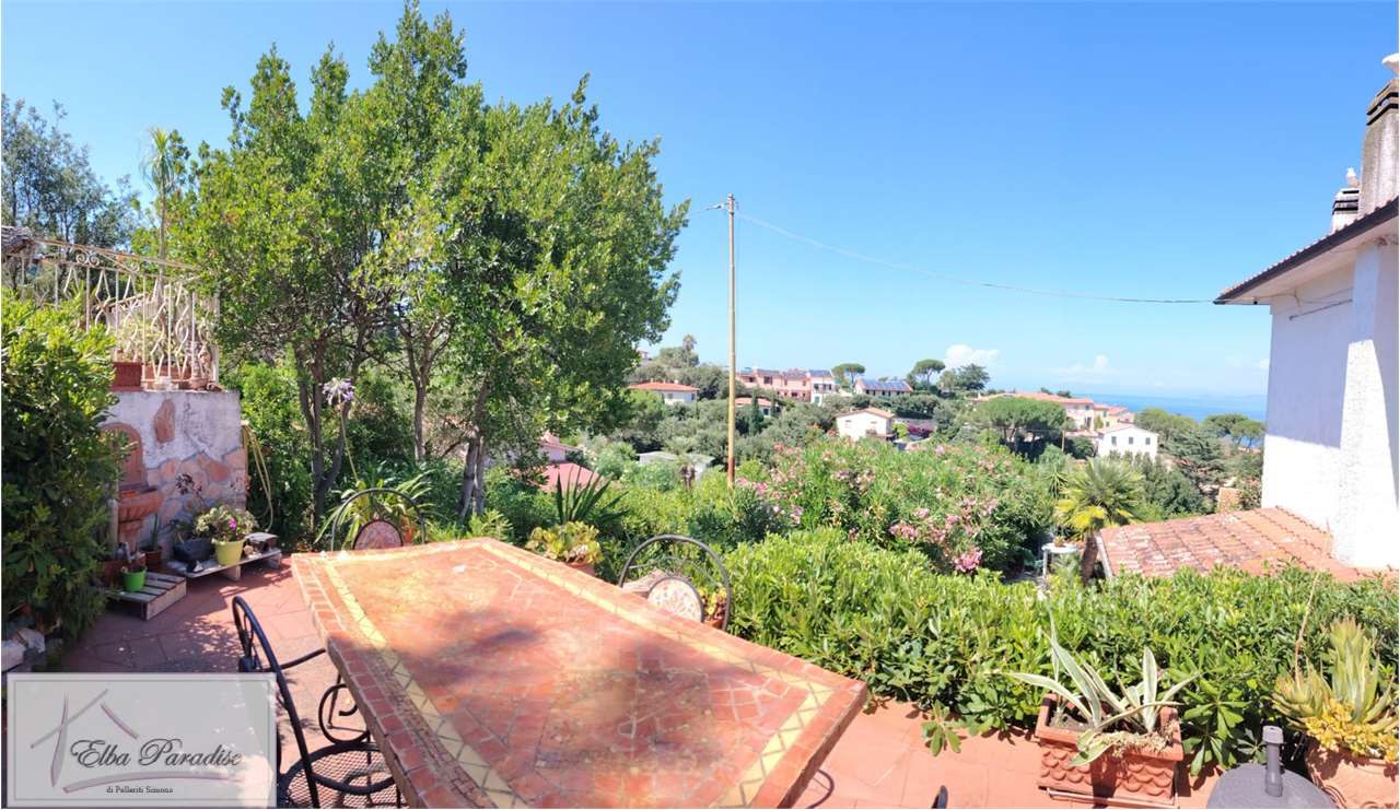 L'immobile si compone al piano terra da: ingresso, ampio salone con caratteristico caminetto in pietra, cucinotto, camera matrimoniale e servizi con vasca. Dalla sala si accede alla terrazza ed alla camera che gode della favolosa vista sullo scoglietto al largo della costa di Portoferraio.
