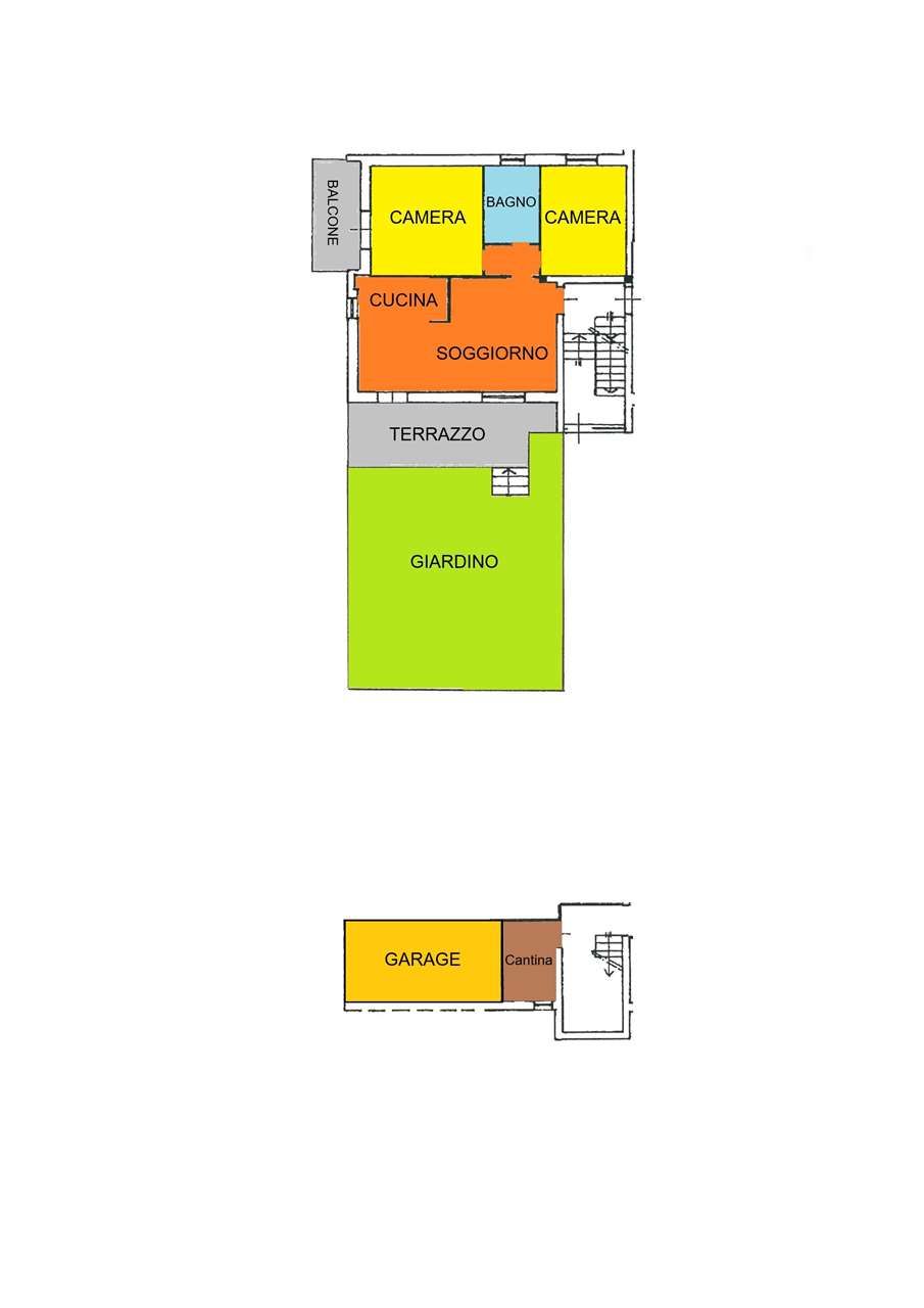 Al piano scantinato troviamo una cantina e un garage singolo, comodi e indispensabili per ogni esigenza di spazio e parcheggio.