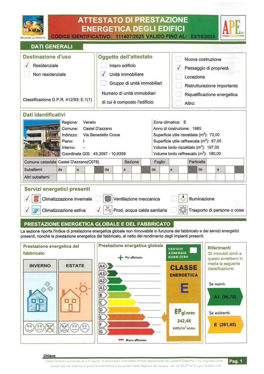 CLASSE ENERGETICA: E 242,48 kWh/m3 a