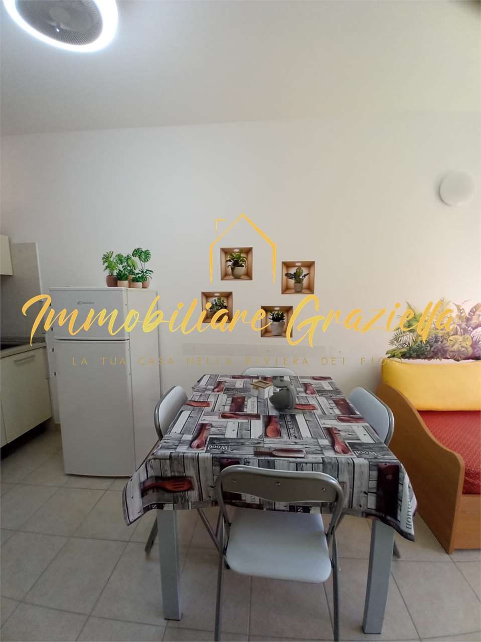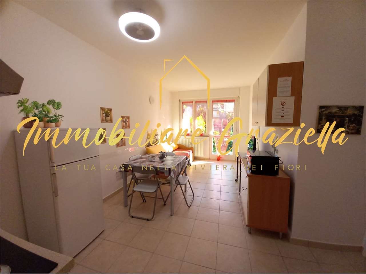 L'immobile è composto da: soggiorno con angolo cottura, camera da letto, bagno con doccia e giardinetto privato. Viene venduto completamente arredato e corredato, comprensivo di utensileria come piatti, padelle e stoviglie, risultando subito pronto sia per l'uso personale sia per la locazione turistica.