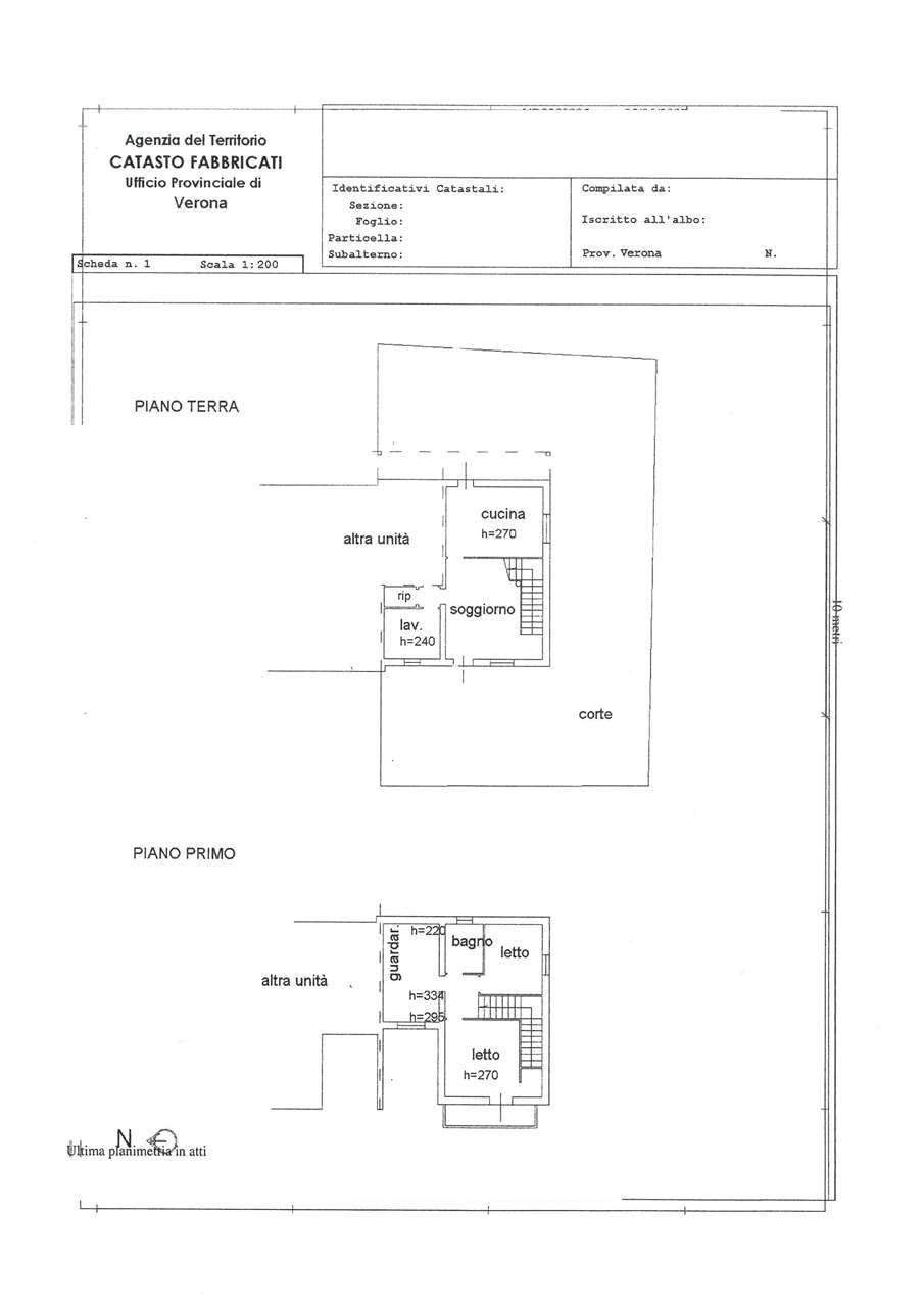 - Piano primo: tre camere da letto, di cui una con balcone, e bagno finestrato