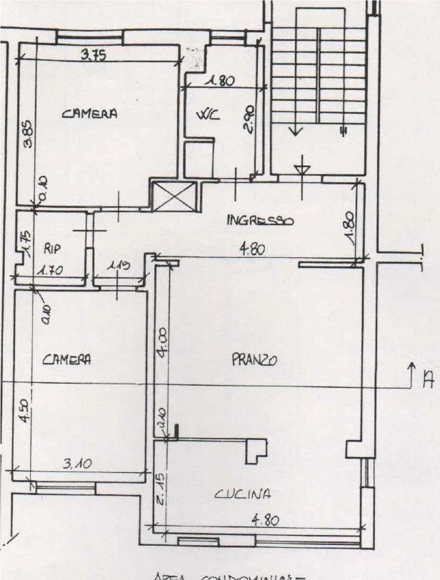 Appartamento al 4° ed ultimo piano senza ascensore in buono stato composto da: 2 camere matrimoniali, sala, zona cucina, bagno, balcone, ingresso con diversi ripostigli, posti auto condominiali, garage + cantina privata e 2 cantine condominiali per il ricovero delle biciclette. Termoautonomo a gas. Esposizione sud/ovest.
